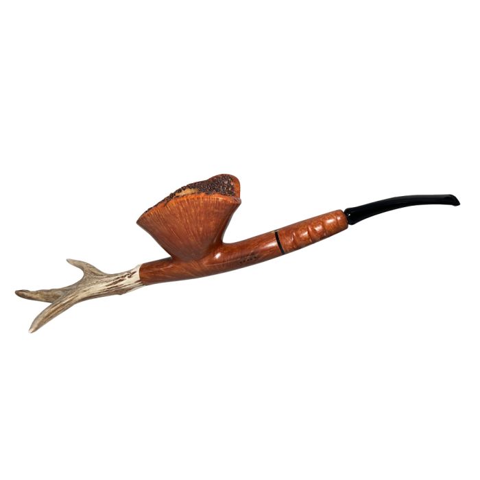 Das Unikat verfügt über eine brillante 360° verlaufende Straight Grain Maserung mit breiter, feiner Naturborke. Das Hornteil lässt sich abnehmen.