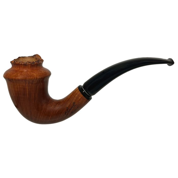 Freehand als Bent und einem sehr schönen 360 Grad Flame Grain Bild. Extravagante Pfeifenkopf Gestaltung mit Naturrosette. Finish in Natural/light ohne Kittstelle.