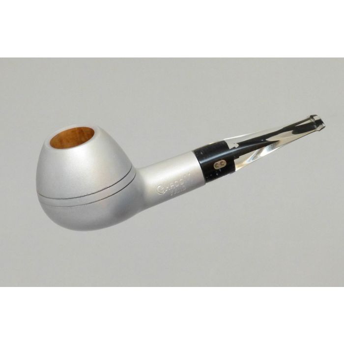 Pfeife hergestellt aus Bruyère im Straight Shape mit Tomato Bowl. Das spezielle Finishing ist in Silber-Weiss mit Metallic- Effekt.