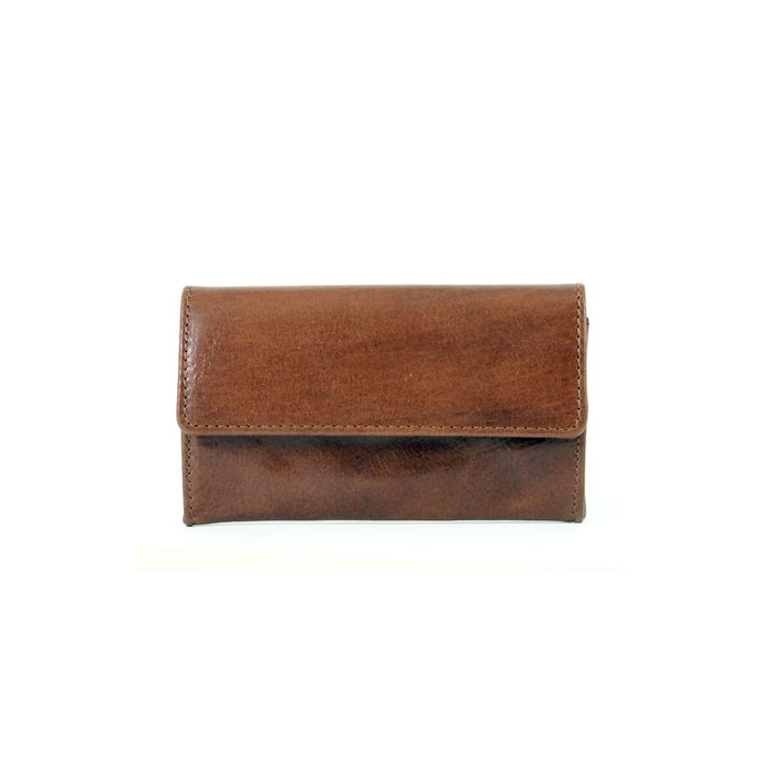 Tabak Stellbeutel aus cognacfarbenem Leder mit Kautschukeinage.
