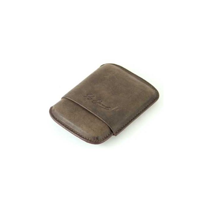Handliches Zigarrenetui von Guy Janot aus braunem Jägerleder. Das Etui ist ausgelegt für vier Short Panatela Zigarren.