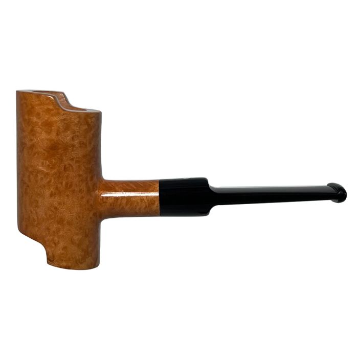 Mastro Geppetto Liscia 3, eine Freehand Pfeife in einem raffinierten wie ansprechenden Standpoker-Shape. Die Roadster Kappe des Pfeifenkopfs wird am Pfeifenboden an der Gegenseite wiederholt, was der Pfeife ein sehr extravagentes Aussehen verleiht.