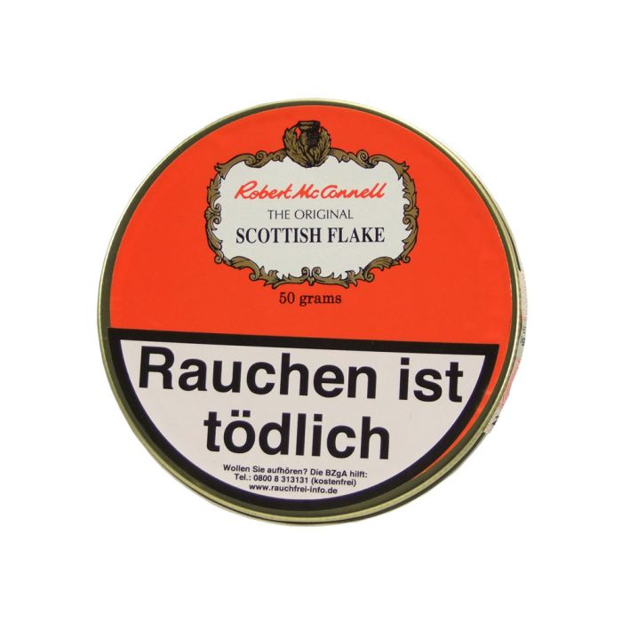 McConnell Scottish Flake Pfeifentabak ist ein Blend aus Red Mottled Virginia und Carolina Leaf sowie mittelstarkem Kentucky und etwas Perique, um einen ausgewogenen Effekt zu erzielen.
