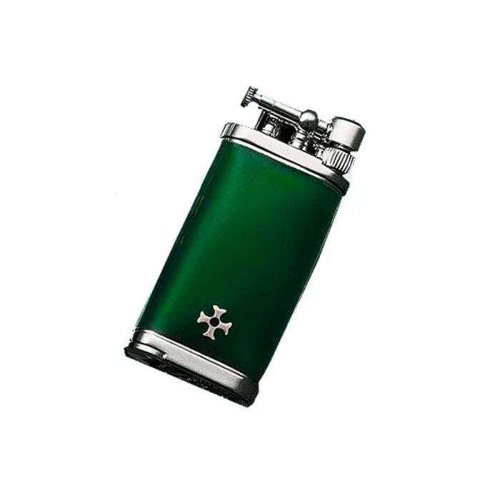 Old Boy Feuerzeug aus dunkelgrüner Kaltemaille und 925er Sterling Silber.
