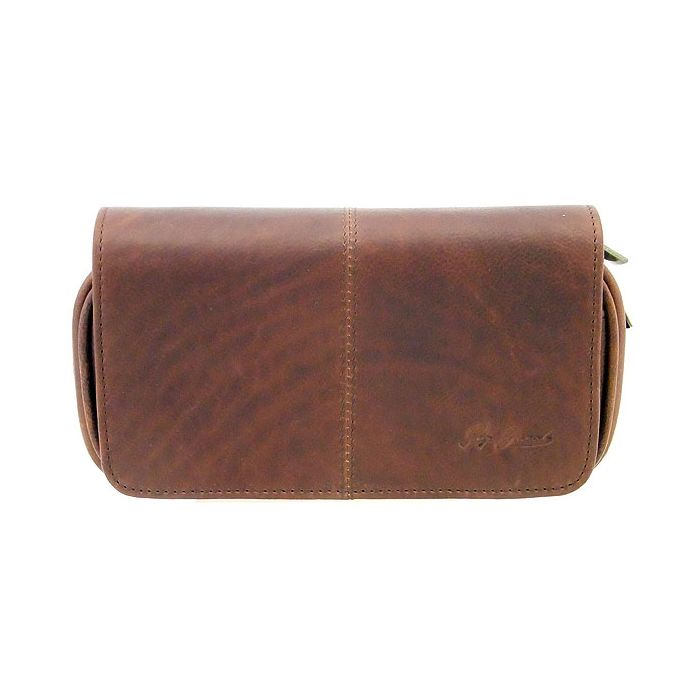 Pfeifentasche aus dunkelbraunen, genarbtem Leder im Used Look für zwei Pfeifen.