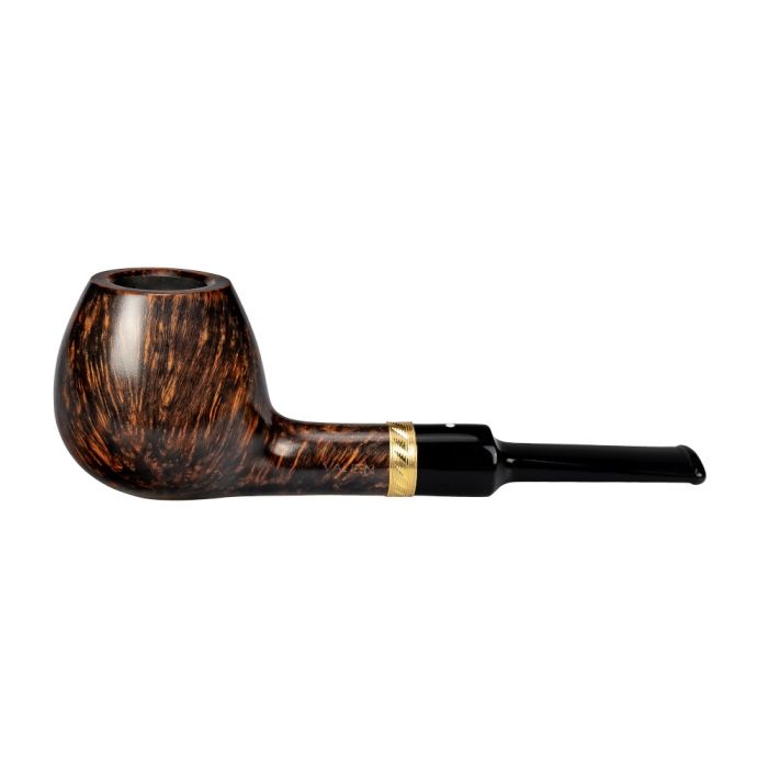 Die Vauen Troja 131 im Straight Apple Shape ist eine elegante, dickwandige Pfeife. Der stilvolle, goldfarbene Ring mit den matten und glänzenden Bereichen verleiht ihr eine interessante Optik.