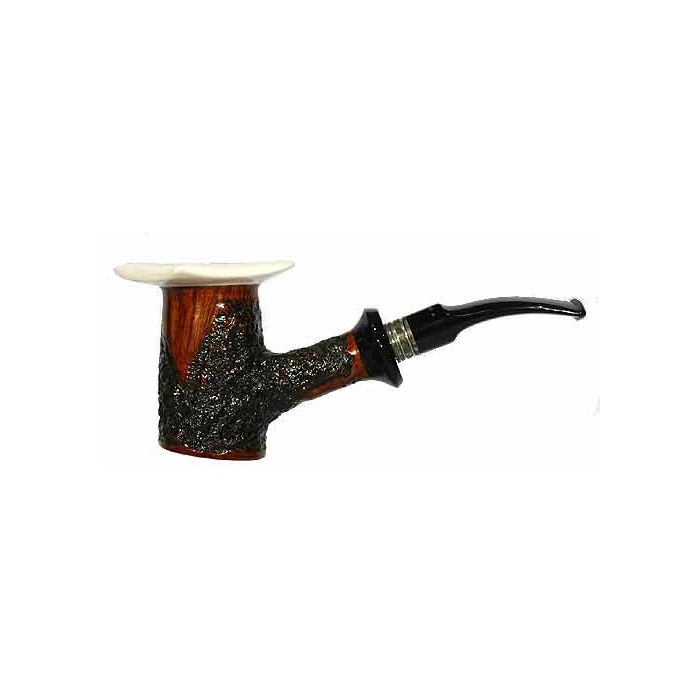 Originelle Pfeife von Poul Winslow im Poker Shape mit weißem "Porzellanhut" und geprägtem Silberring am Holm.