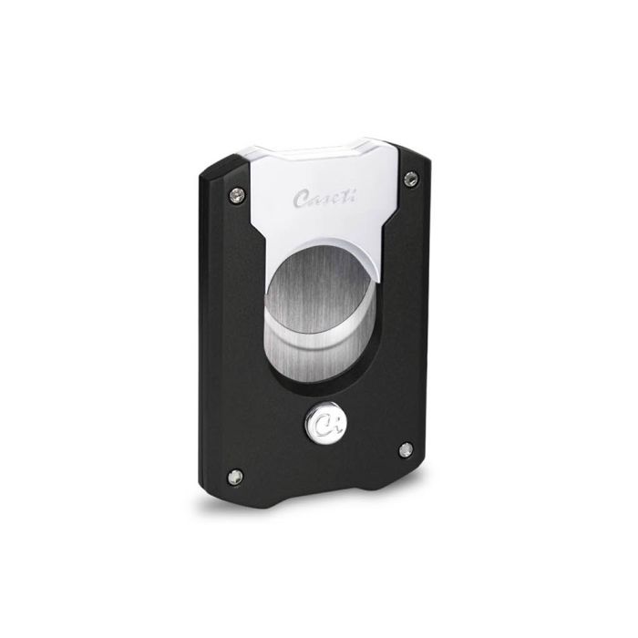 Zigarrenabschneider Caseti in schwarz matt und Chrom für saubere Zigarrenschnitte bis 22mm (Ringmaß 53).